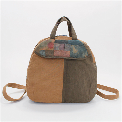 감색 / 조각색상랜덤 천연염색 / 면 약 37×26×9cm / 주머니(뒤 1개, 내부 2개) / 끈(길이 약 18cm, 폭 약 2.7cm)