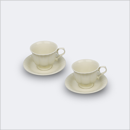 아이보리 커피잔 2p, 잔받침 2p 잔 약 9×7.5cm, 받침 약 15.8×2.5cm, 약 200ml