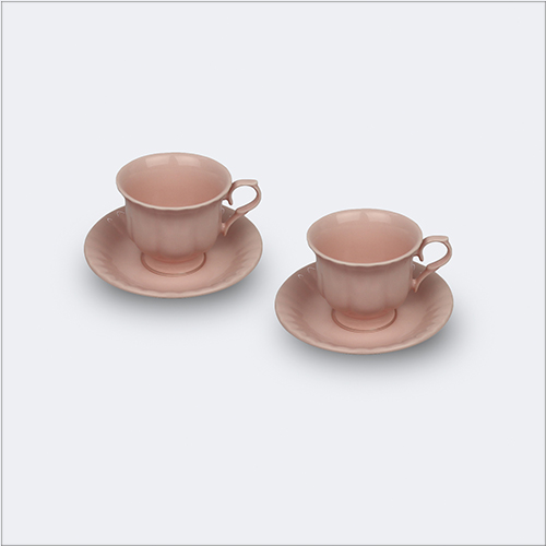 핑크 커피잔 2p, 잔받침 2p 잔 약 9×7.5cm, 받침 약 15.8×2.5cm, 약 200ml