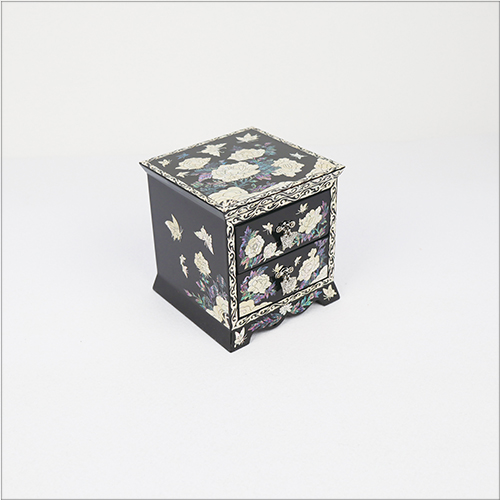 검정 / 목단문 서랍2개 약 12.5×12.5×13.5cm
