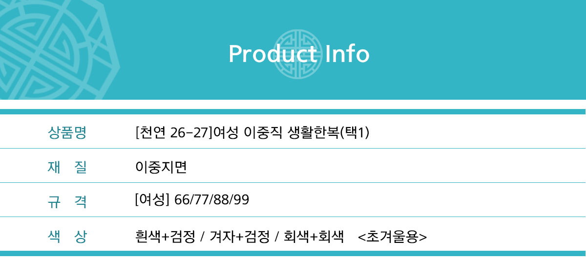 HOME > 천연염색 > 생활한복 > [천연26-27]여성 이중직 생활한복(택1)