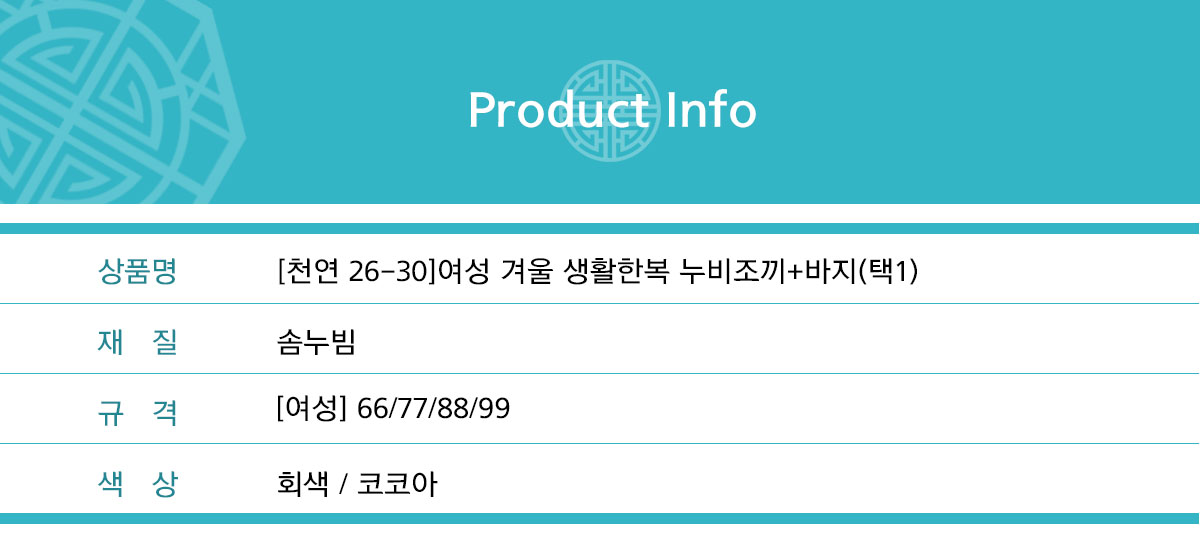 HOME > 천연염색 > 생활한복 > [천연26-30]여성 겨울 생활한복 누비조끼+바지(택1)