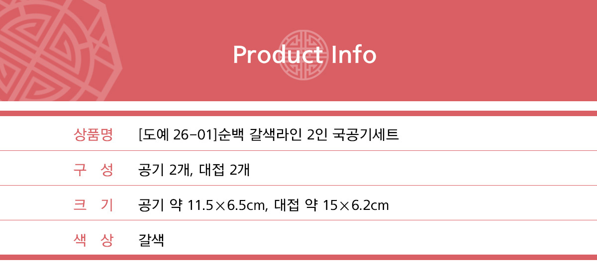 [도예26-01]순백 갈색라인 2인 국공기세트