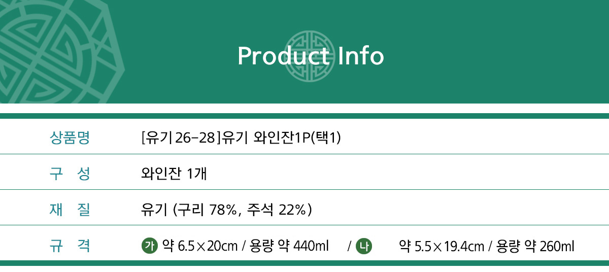HOME > 유기공예 > 컵/잔 > [유기26-29]유기 와인잔1P(택1)